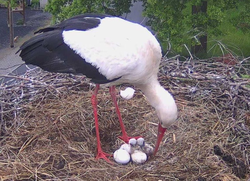 Leider wurde das Nest mehrmals von anderen Störchen angegriffen, was zu Verletzungen bei der Störchin führte. Trotzdem legten sie fünf Eier, von denen vier schlüpften. Bedauerlicherweise verstarben jedoch alle Jungstörche, sodass es keinen Nachwuchs gab.